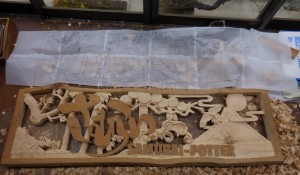 関西代表として、上丹生木彫の伝統を使った透し彫りの看板製作を行いました。